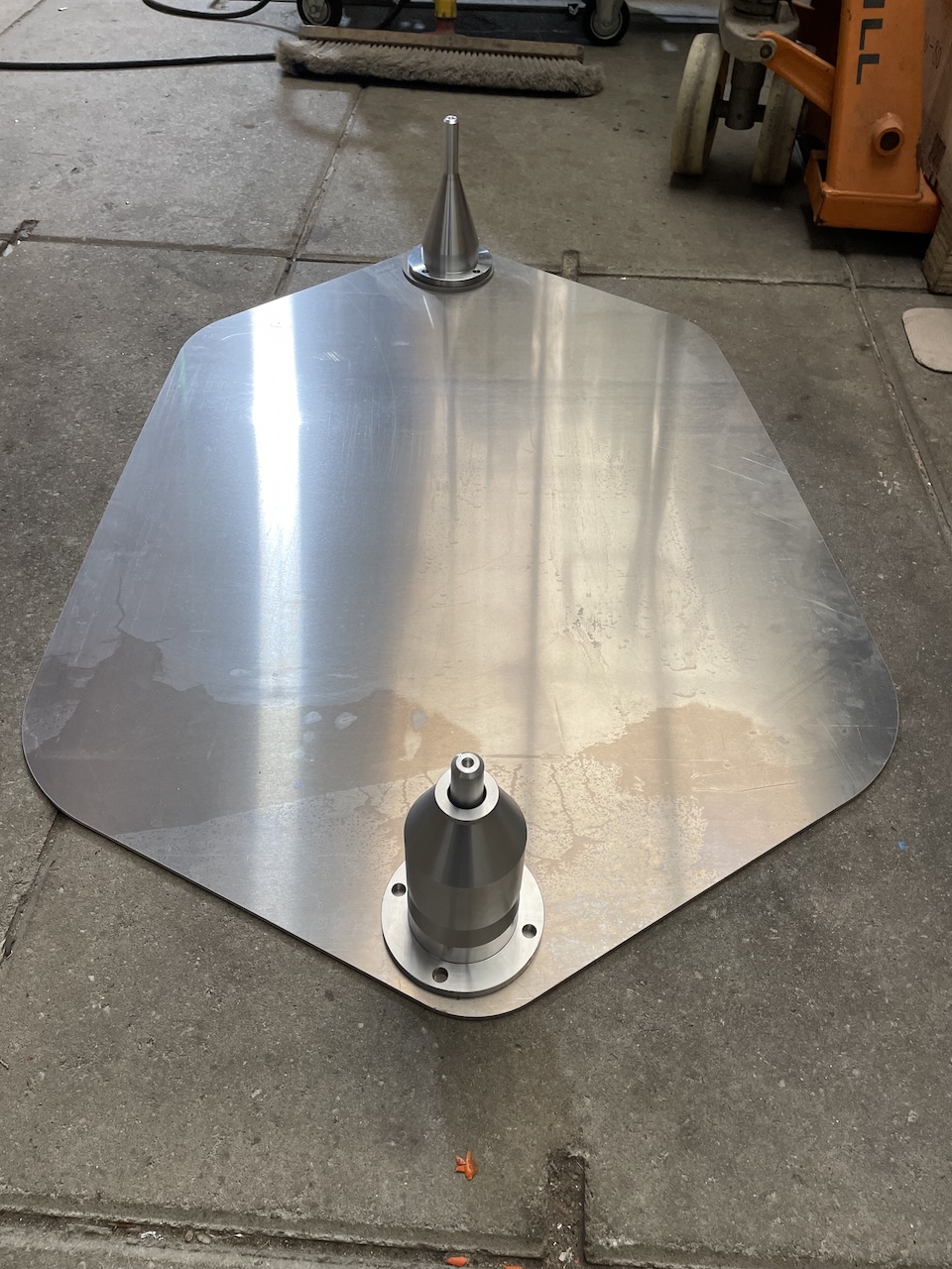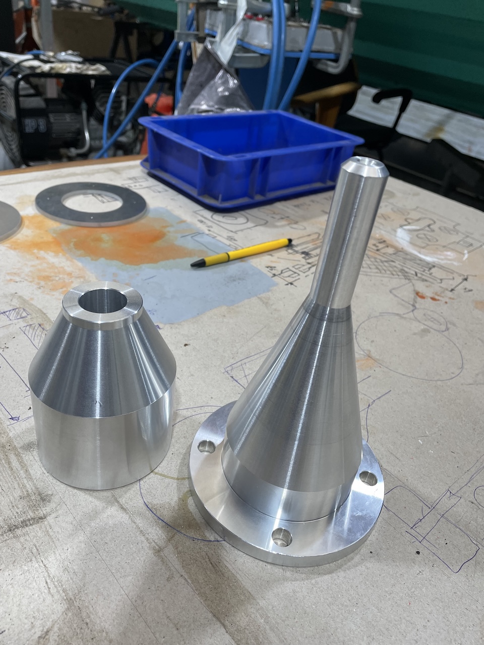 Hiermee is de hoogte en de vorm van de centreerpennen bepaald. Omdat de centreerpennen de zelfde vorm houden maar de afmetingen van een eventuele uitgewisselde accukoffer af kan wijken, moeten de conussen zowel in hoogte als en lengte verstelbaar zijn.